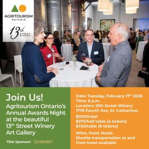Join us for an unforgettable evening celebrating the very best of Ontario agritourism at the Annual Agritourism Ontario Awards Night, hosted at the stunning Art Gallery venue at 13th Street Winery. Enjoy a seated three-course meal, live music, and an inspiring awards presentation honouring the leaders and innovators shaping our sector. This is a night [...]